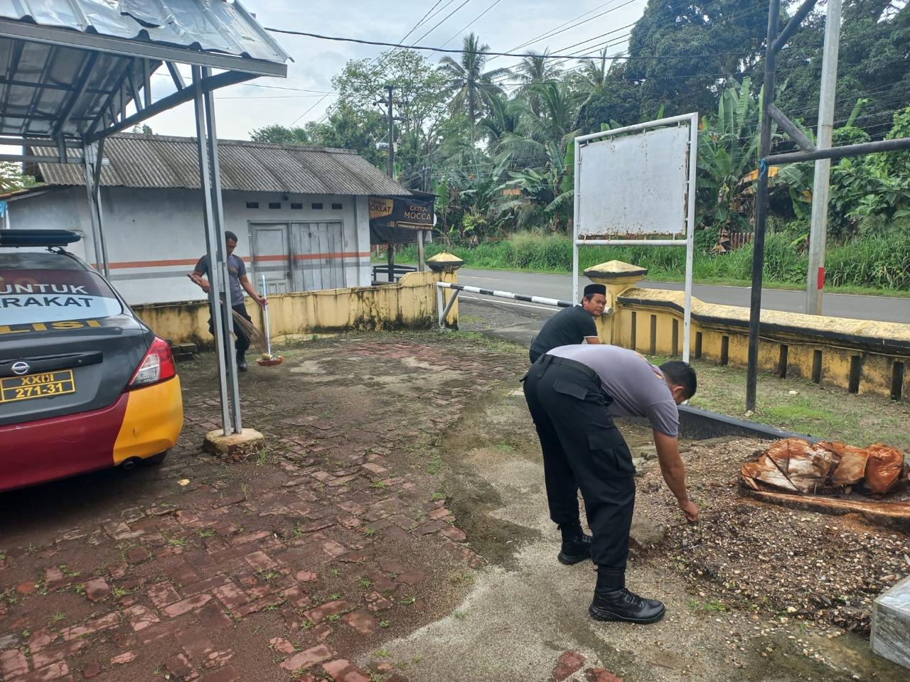 *Ciptakan Lingkungan Kerja Sehat, Personil Polsek Cinangka Laksanakan Kerja Bakti di Mako*