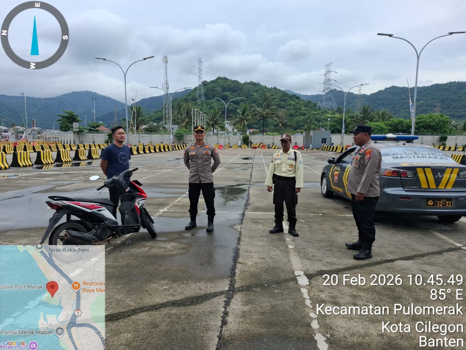 Cilegon - Personel Polsek Kskp Merak Polres Cilegon Polda Banten melaksanakan sambang dan patroli kawasan pelabuhan merak dalam rangka menjaga Harkamtibmas di Kawasan Pelabuhan Merak, Jumat (20/02/2026).