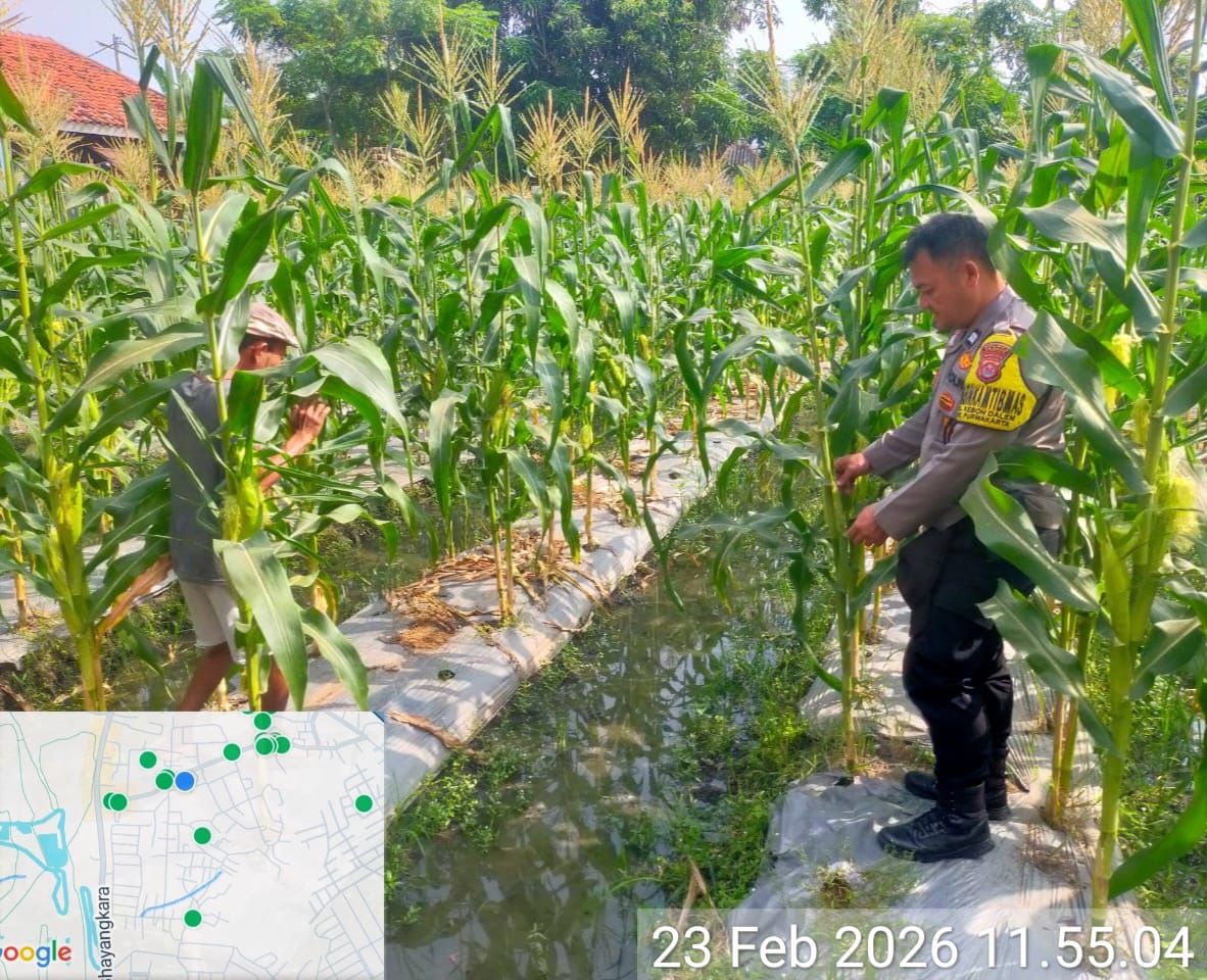 Personil Bhabinkamtibmas Polsek Purwakarta aktif selalu melaksanakan Cek Tanaman Jagung Untuk Ketahanan Pangan.