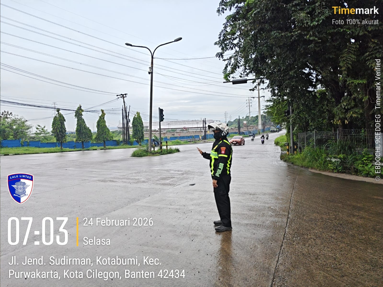 Cilegon, Satlantas Polres Cilegon Polda Banten – Berikan pelayanan kepada masyarakat Kasat lantas Polres Cilegon AKP Ridwan memerintahkan jajaran lalulintas untuk melaksanakan pengaturan lalu lintas di penggal – penggal jalan yang rawan kemacetan di Kota Cilegon, (Selasa,24/2/2026)