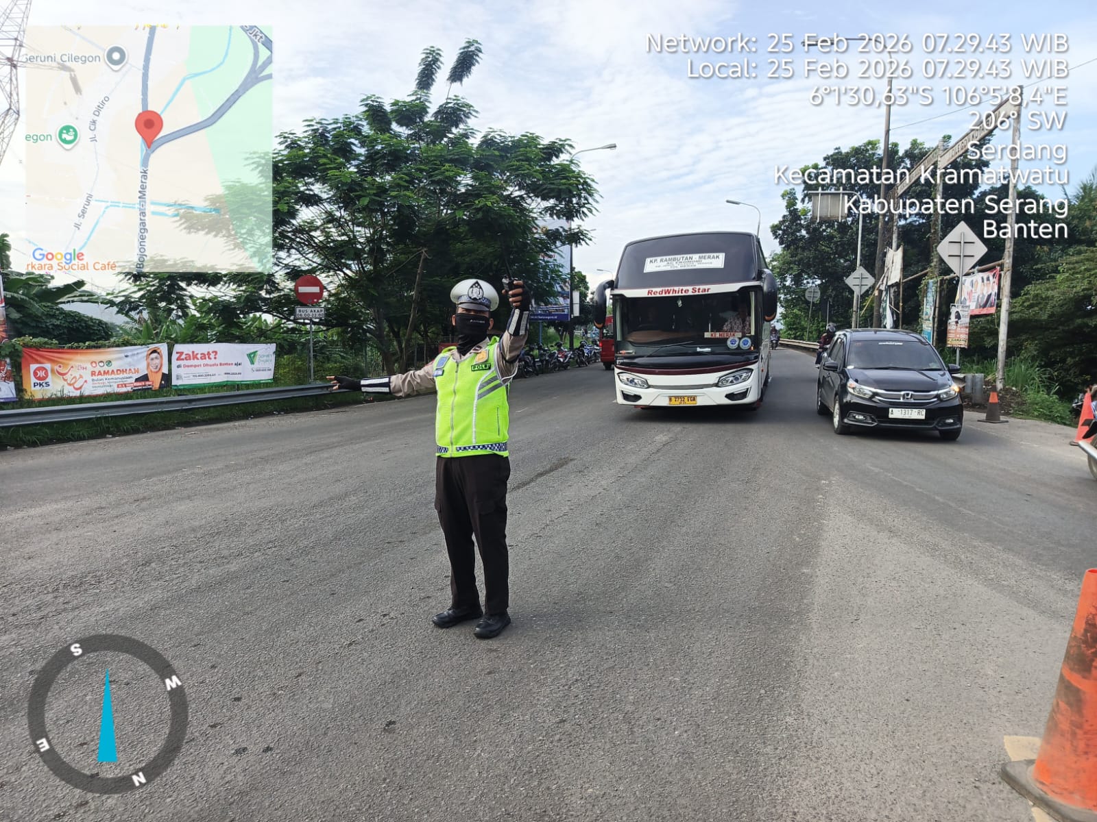 Pengaturan pagi hari ini melibatkan personil Polres Cilegon dari Satpamobvit, Satlantas, dan Polsek.