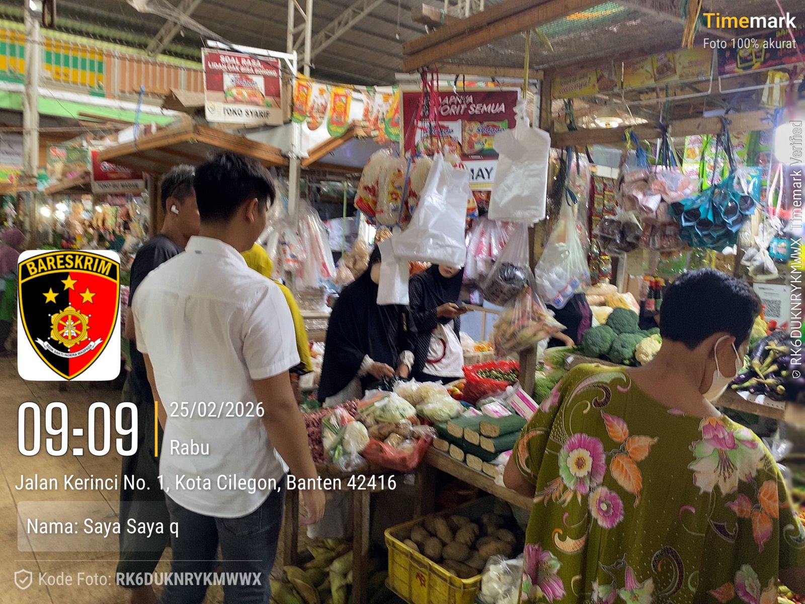 Cilegon – Unit II Satreskrim Polres Cilegon Polda Banten melakukan pengecekan terhadap persediaan dan harga bahan pangan di Pasar Kelapa, Cilegon, tahun 2026. Rabu tanggal 25 02 2026.
