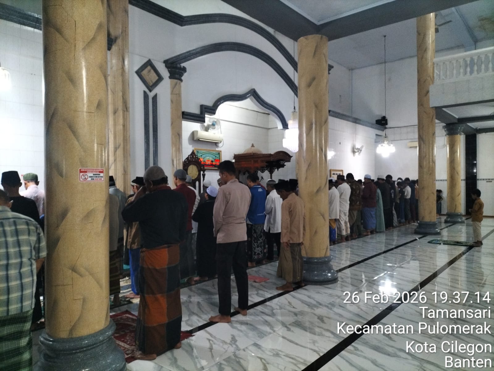 Cilegon – Polres Cilegon Polda Banten, Personil Polsek Kp Merak Polres Cilegon Polda Banten laksanakan tarawih keliling di Masjid Al-Ikhlas Kel. Tamansari Kec. Pulomerak Kota Cilegon, Kamis (26/02/2026)