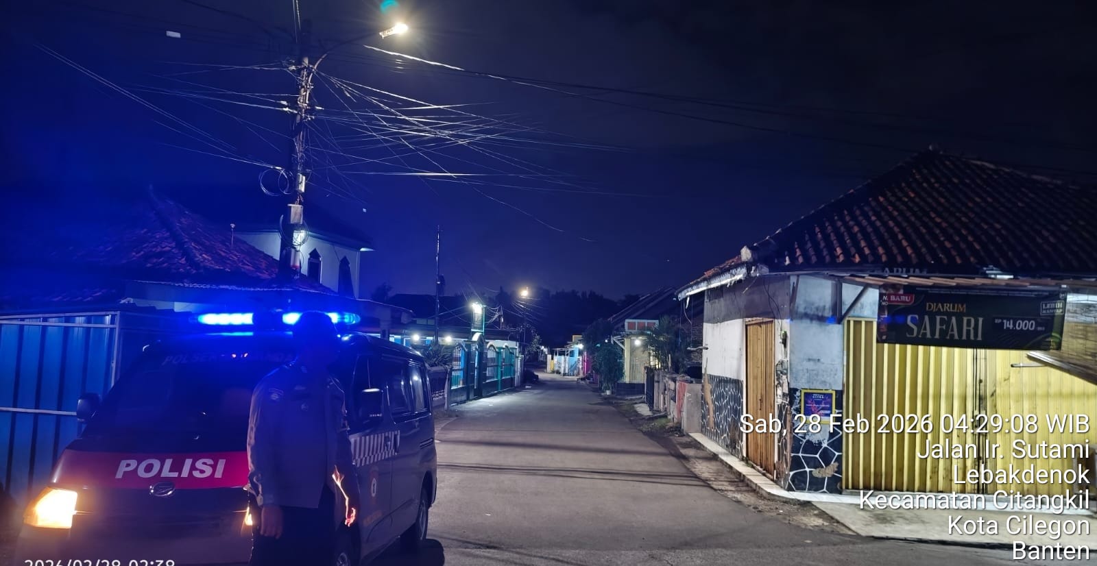 Cilegon - Polres Cilegon melalui Polsek Ciwandan melaksanakan kegiatan Blue Light Patrol. Kegiatan ini bertujuan untuk mengantisipasi gangguan kamtibmas, premanisme, C3 (curat, curas, dan curanmor), balap liar, gang motor, dan perkelahian remaja didaerah hukum Polsek Ciwandan, Sabtu (28/02/2026).