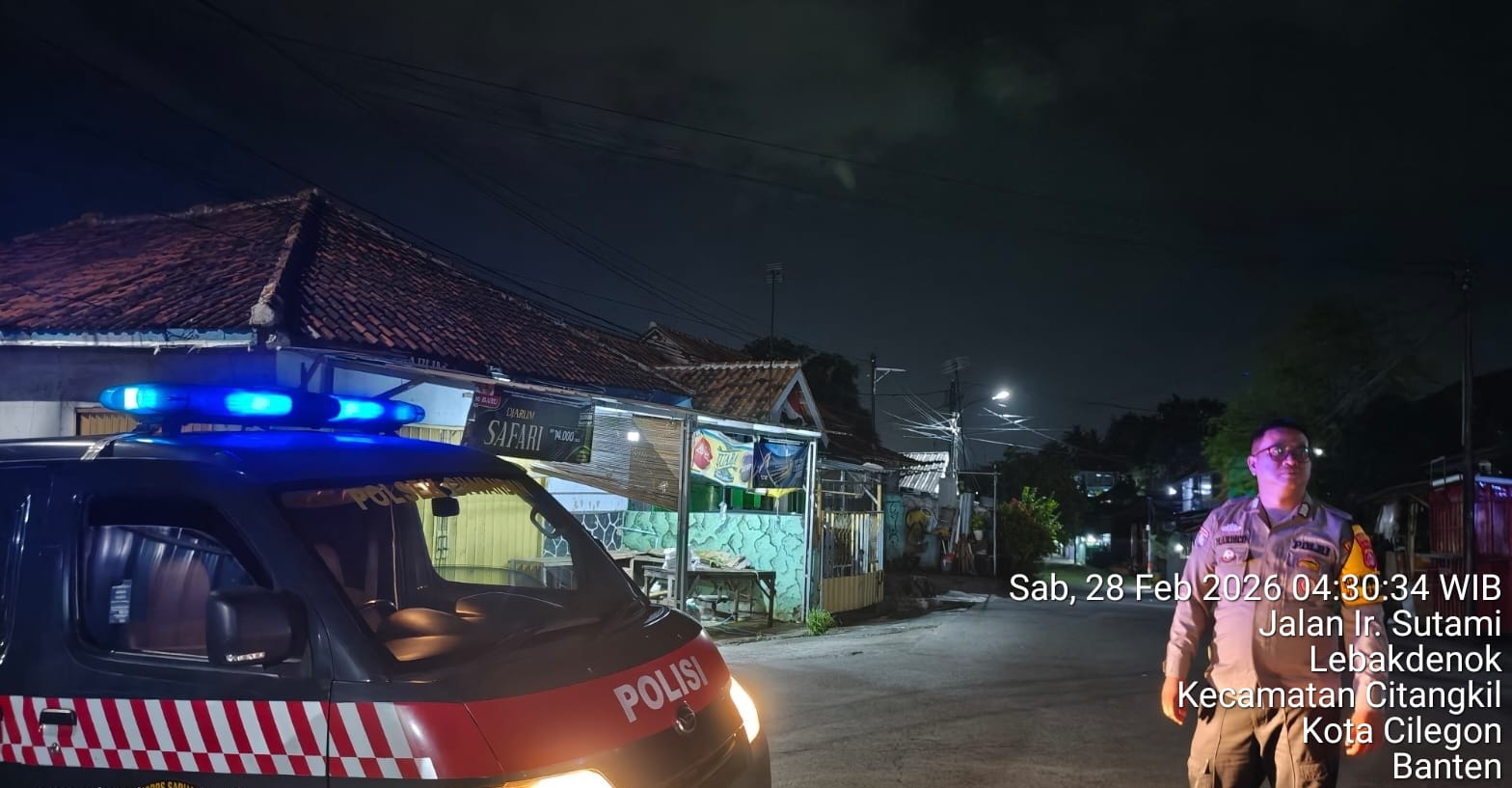Cilegon - Polres Cilegon melalui Polsek Ciwandan melaksanakan kegiatan Blue Light Patrol. Kegiatan ini bertujuan untuk mengantisipasi gangguan kamtibmas, premanisme, C3 (curat, curas, dan curanmor), balap liar, gang motor, dan perkelahian remaja didaerah hukum Polsek Ciwandan, Sabtu (28/02/2026).