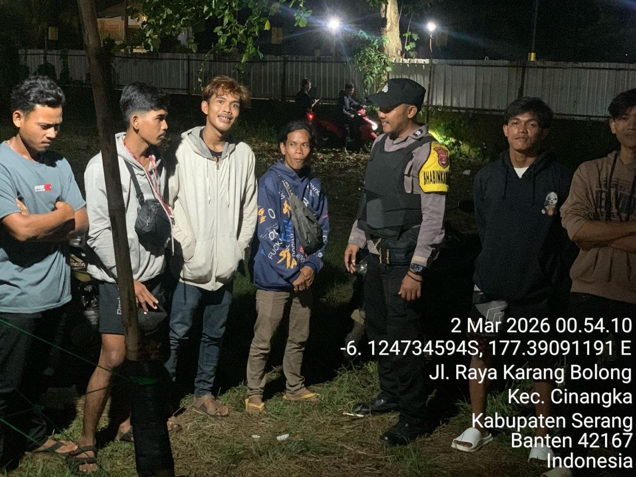 *Cilegon* – Dalam Rangka Pencegahan Kejahatan Jalanan dan Memelihara situasi keamanan dan menjaga serta memberikan rasa aman dan nyaman di masyarakat,Salah satu upaya untuk mewujudkan hal tersebut sebagaimana yang dilakukan oleh Personil Polsek Cinangka Polres Cilegon Polda Banten melaksanakan giat patroli blue light malam hari hingga menjelang pagi, Senin (02/03/2026).