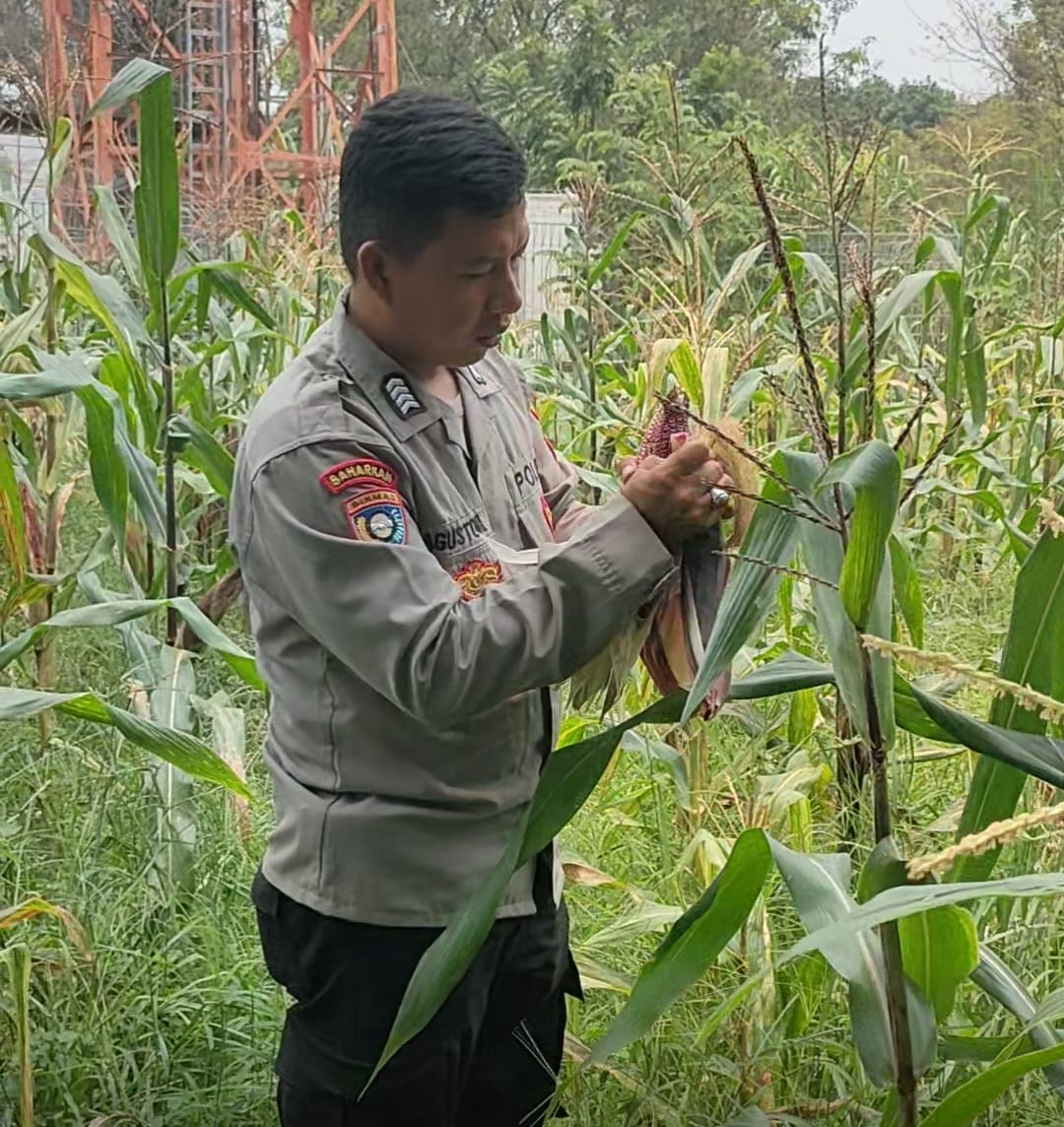 Dalam kegiatan tersebut, Bhabinkamtibmas melakukan pemantauan langsung terhadap pertumbuhan tanaman jagung sekaligus memberikan motivasi serta imbauan kamtibmas kepada para petani agar tetap menjaga keamanan lingkungan dan meningkatkan produktivitas pertanian.