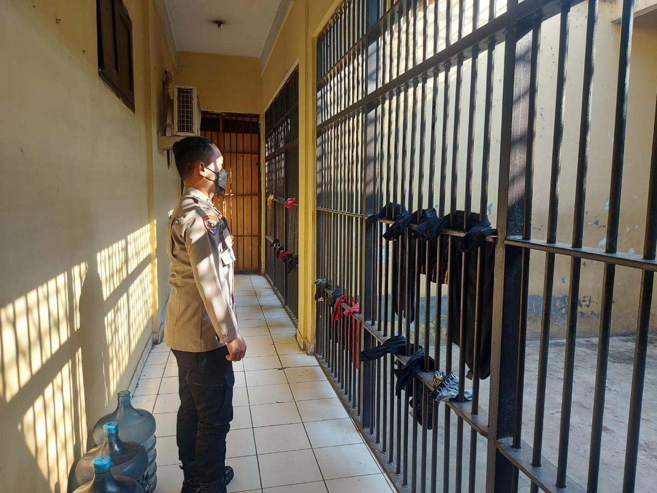 Brigadir Hadi Sudrajat selaku personel seksi pegawasan Polres Cilegon memeriksa Kondisi di Dalam Rutan Polres Cilegon.