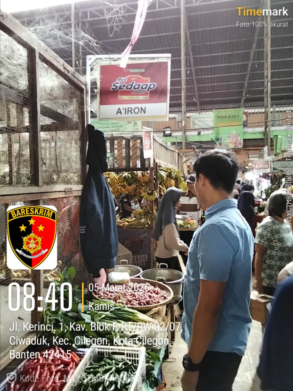 Cilegon – Unit II Satreskrim Polres Cilegon Polda Banten melakukan pengecekan terhadap persediaan dan harga bahan pangan di Pasar Anyar, Cilegon, menjelang pelaksanaan di tahun 2026. Kamis tanggal 05-03-2026.