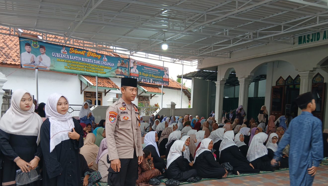 Cilegon - Bhabinkamtibmas Polsek Ciwandan Polres Cilegon Polda Banten AIPDA Asep Karyudin hadir dan mengamankan kegiatan Safari Ramadhan tingkat Provinsi Banten yang dilaksanakan di Masjid Al-Musyawarah, Jl. Sunan Bonang, Kelurahan Kubangsari, Kecanatan Ciwandan, Kota Cilegon, Kamis (05/03/2026).
