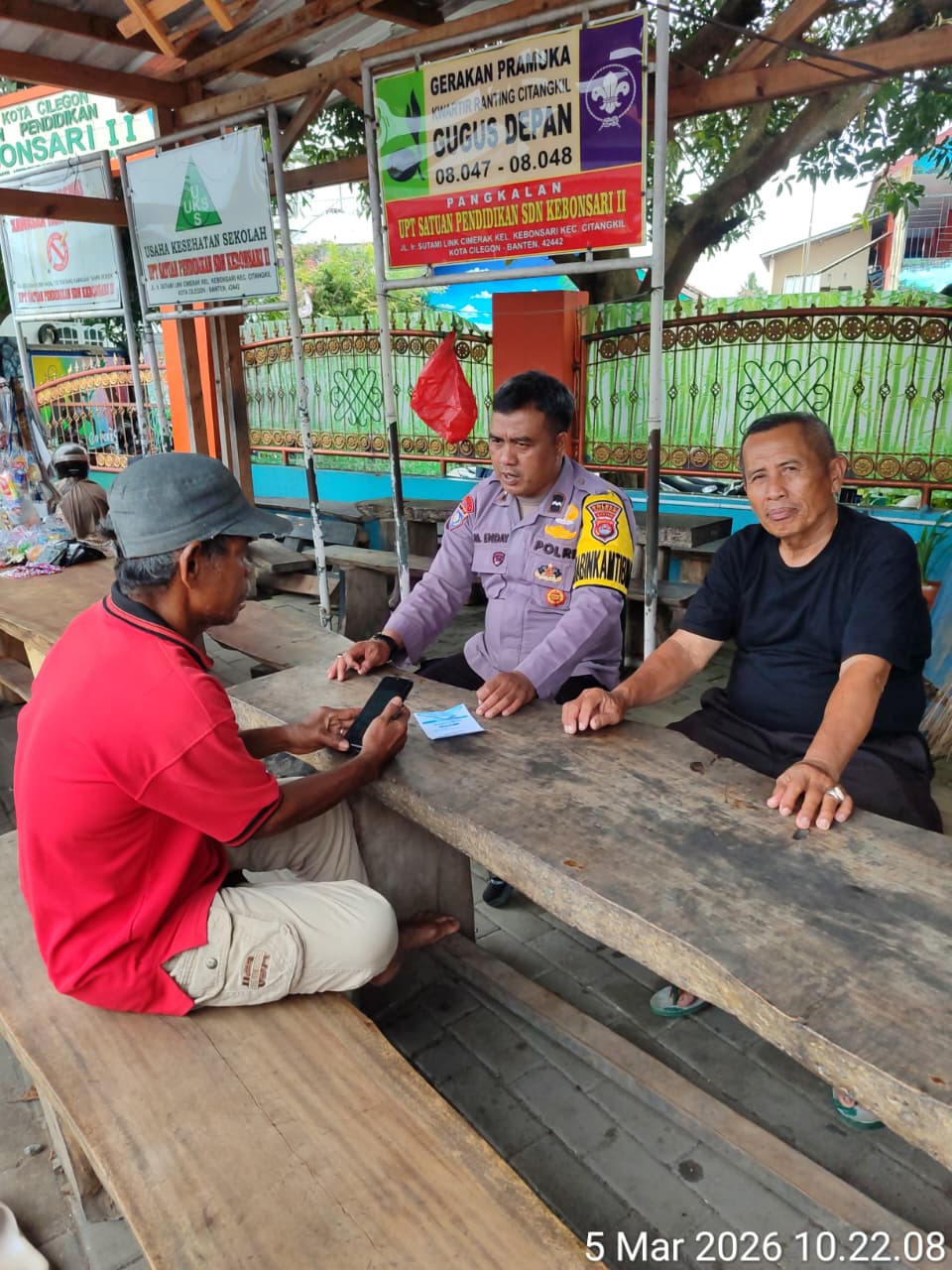 Cilegon - Guna mencegah gangguan kamtibmas, Personil Polsek Ciwandan Polres Cilegon Polda Banten melaksanakan giat Patroli dialogis dipangkalan Ojek (Opang) Pertigaan Simpang Warnasari Kelurahan Kebonsari kecamatan Citangkil, Kamis (05/03/2026).