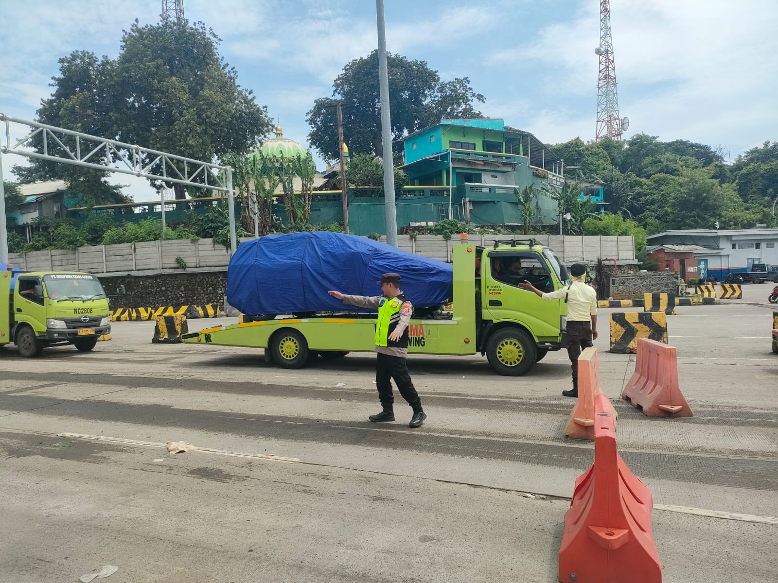 Personel Polsek Kskp Merak Laksanakan Pengaturan Antrian Kendaraan Di Pelabuhan Merak
