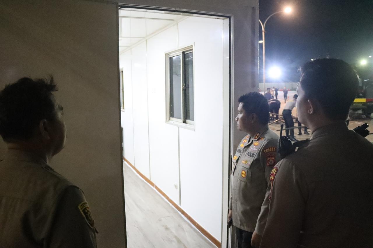 Cilegon - Menjelang arus mudik Lebaran tahun 2026, Kapolres Cilegon, AKBP Martua Raja Taripar Laut Silitonga S.H S.IK M.S.I,didampingi Wakapolres Cilegon Kompol M. Ridzky Salatun, Kabag Ops AKP Chairul Anam, Kabag Logistik AKP Sudibyo Wardoyo, Kasi Propam AKP Heri Susanto dan Kasat Lantas AKP Ridwan Koto melakukan peninjauan langsung kesiapan pembangunan Pos Pengamanan (Pos Pam) dan Pos Pelayanan (Pos Yan). Senin malam,9/3/26