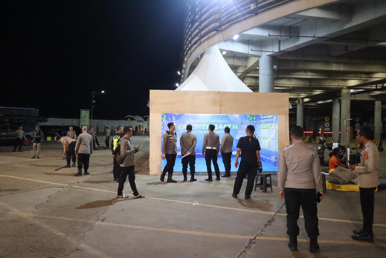 Cilegon - Menjelang arus mudik Lebaran tahun 2026, Kapolres Cilegon, AKBP Martua Raja Taripar Laut Silitonga S.H S.IK M.S.I,didampingi Wakapolres Cilegon Kompol M. Ridzky Salatun, Kabag Ops AKP Chairul Anam, Kabag Logistik AKP Sudibyo Wardoyo, Kasi Propam AKP Heri Susanto dan Kasat Lantas AKP Ridwan Koto melakukan peninjauan langsung kesiapan pembangunan Pos Pengamanan (Pos Pam) dan Pos Pelayanan (Pos Yan). Senin malam,9/3/26