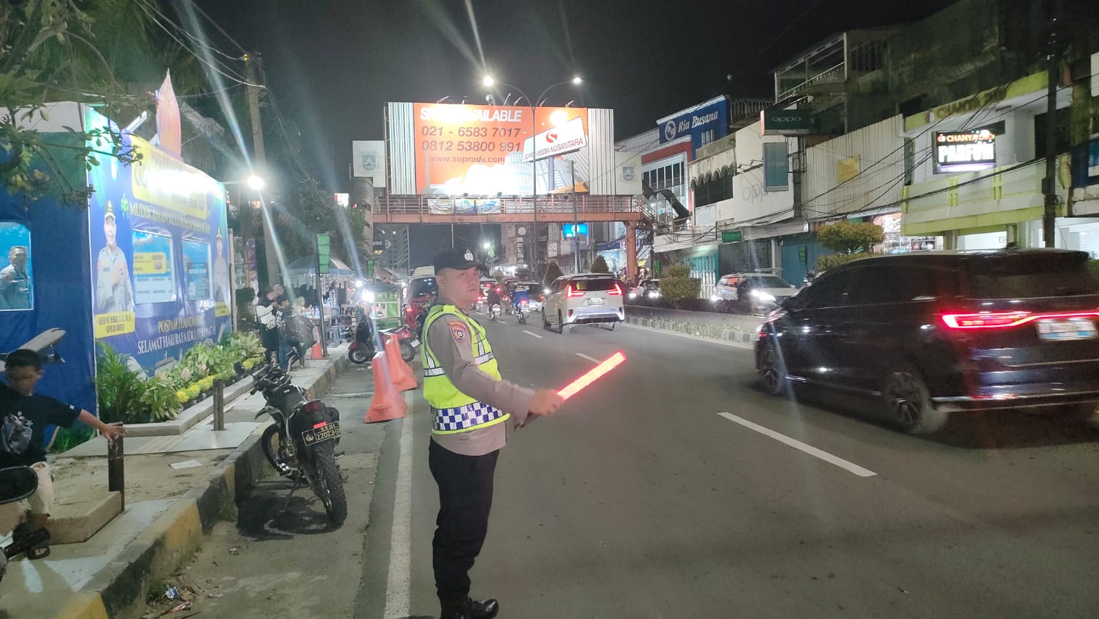 Personil Pos Pam 3 Landmark Polsek Purwakarta Laksanakan Pengaturan Malam Takbir antisipasi Kepadatan