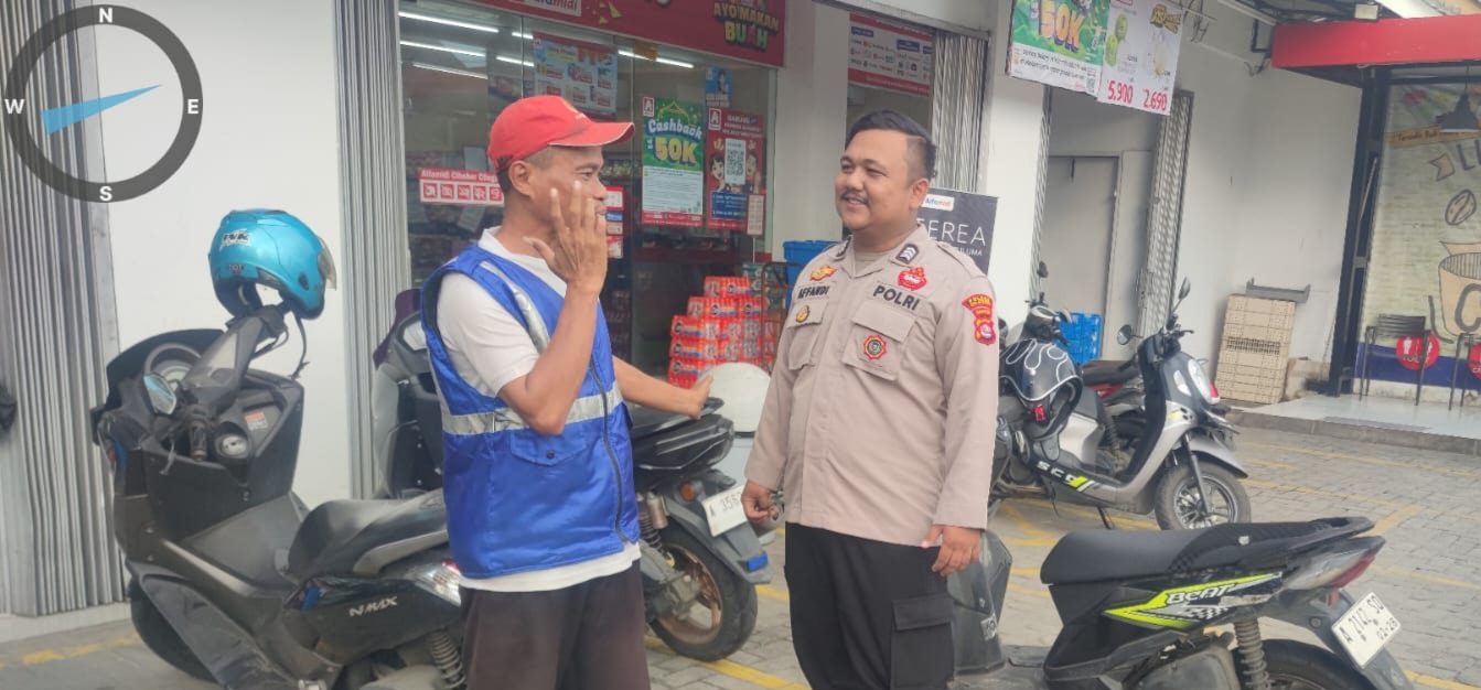 *Cilegon* - Dalam rangka menjaga situasi kamtibmas aman kondusif dan mencegah terjadinya pencurian sepeda motor dan helm, personil Polsek Cibeber Polres Cilegon Polda Banten Berikan Himbauan Kepada Warga dan pegawai minimarket yang berada di sekitar wilayah Hukum Polsek Cibeber,