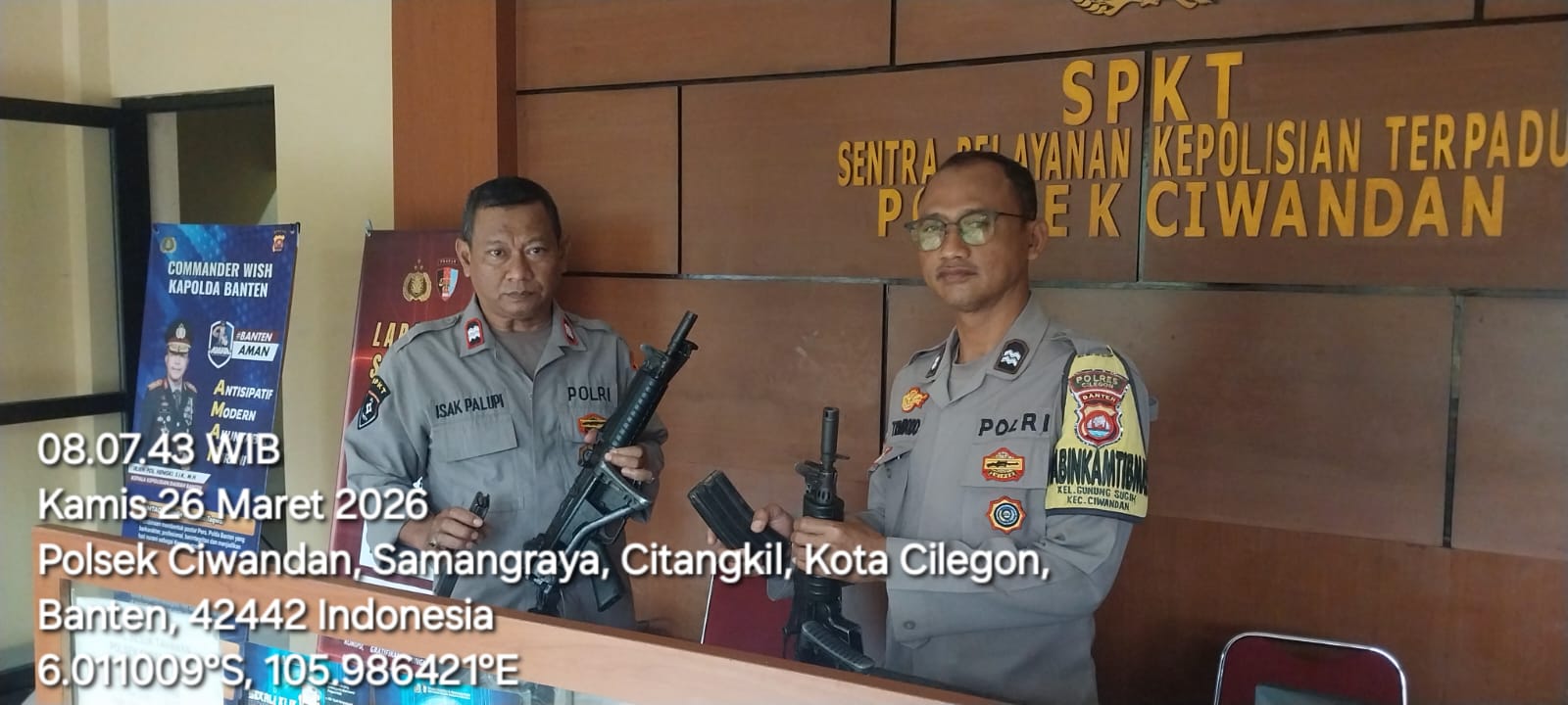 Kapolres Cilegon Polda Banten AKBP Dr. Martua Raja Taripar Laut Silitonga Melalui Kapolsek Ciwandan Polres Cilegon Polda Banten KOMPOL Achri Dwi Yunito Menekankan dan menegaskan dalam serah terima tugas jaga Mako dan pelayanan KA-SPKT wajib mengecek barang Inventaris mulai dari Senpi Dinas, Mobil Patroli, serta barang Inventaris lainya termasuk Mako apabila ada hal yang tidak sesuai wajib di cek secara seksama sehingga sewaktu serah terima tidak ada yang terabaikan dan dapat dipertanggung jawabkan, ungkapnya.