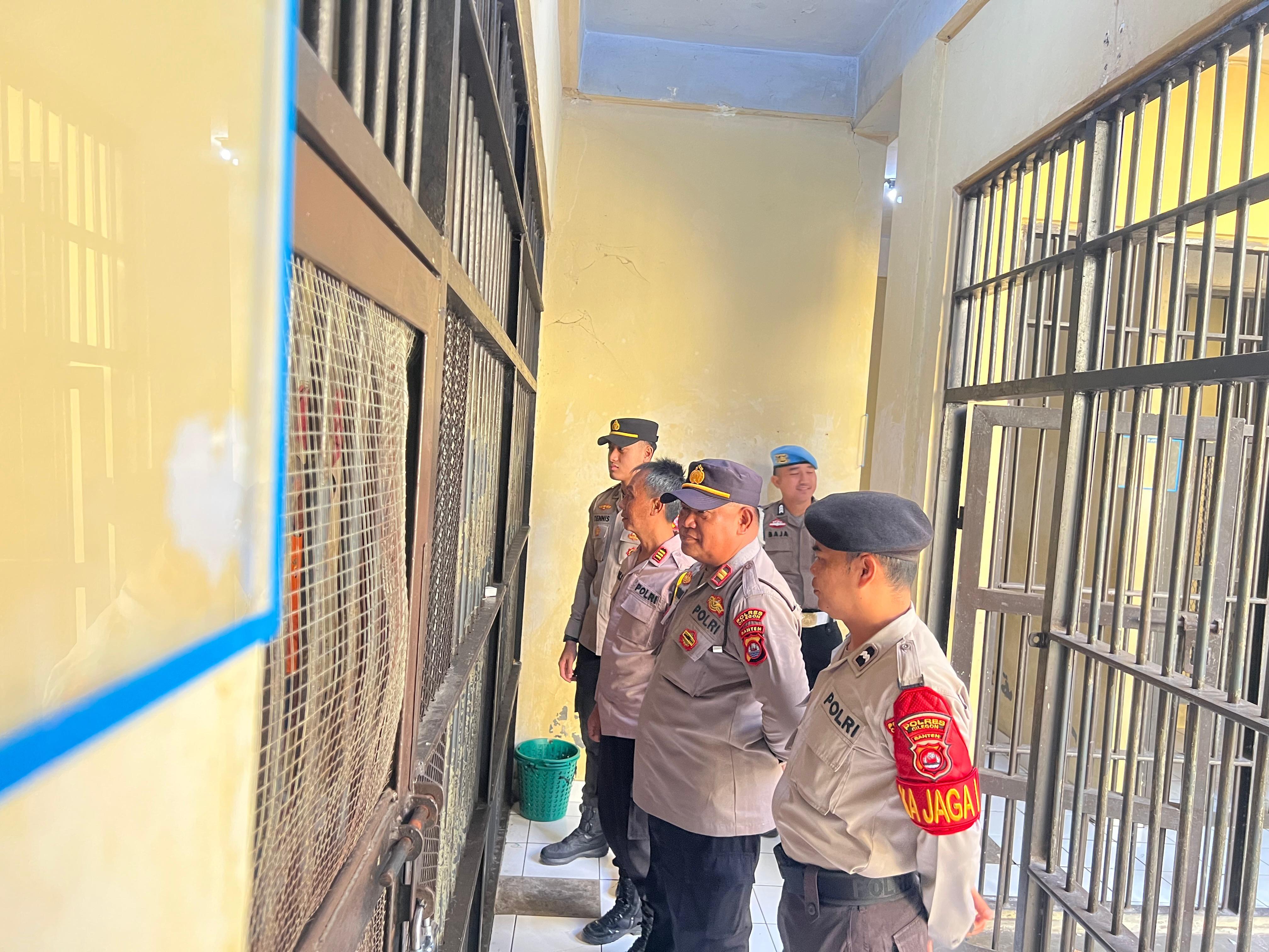 kasiwas polres cilegon melaksanakan pengecekan secara langsung ke Ruang Tahanan Polres Cilegon guna memastikan tahanan dalam keadaan aman