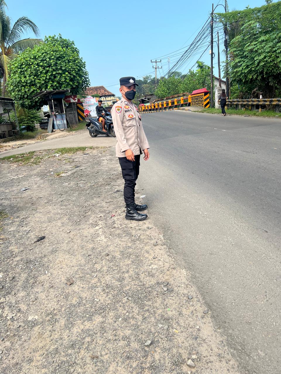 Cilegon,Polres Cilegon Polda Banten Pada Minggu 28 /03//2025 Pukul 08.00 Wib, Personil Siwas Polres Cilegon, Brigadir Hadi Sudrajat melaksanakan kegiatan pengaturan arus lalu lintas di Jalur arah  wisata Pantai Anyer.