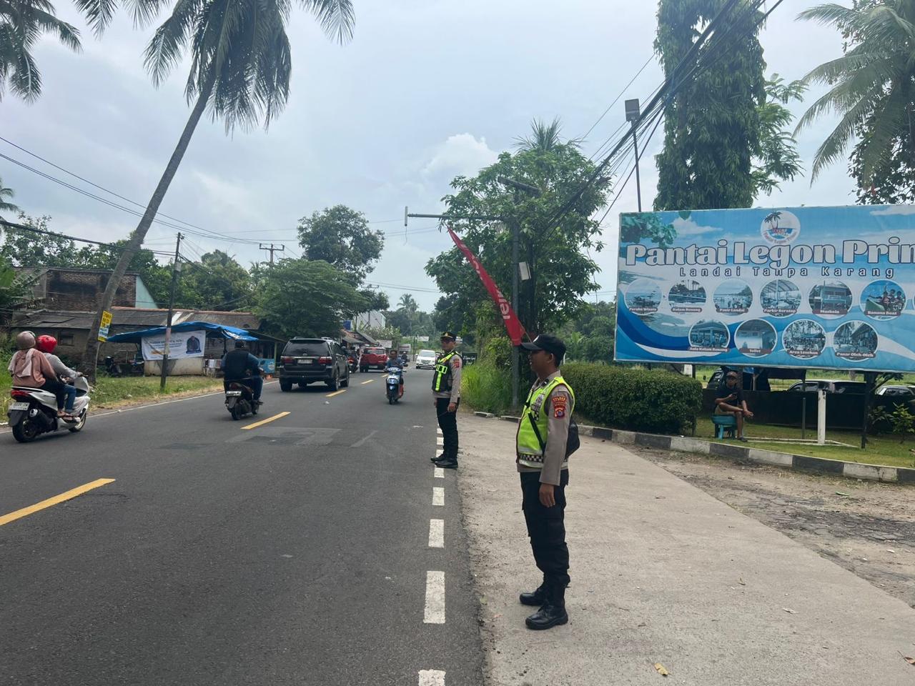 *Polres Cilegon* - Guna Kelancaran Arus Lalu-Lalu-lintas Jalur Wisata Yang ada di daerah hukum Polsek Cinangka Polres Cilegon Polda Banten,Para Wisatawan menuju Pantai Cinangka, Personil Polsek Cinangka Polres Cilegon Polda Banten Laksanakan Pengaturan Lalu-lintas Wisata, Sabtu (28/03/2026).