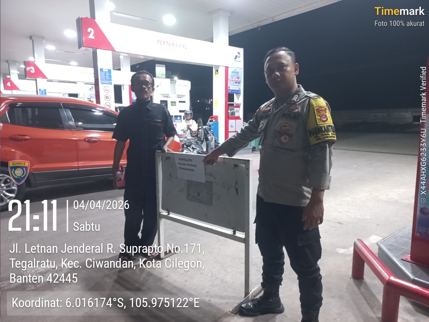 Cilegon - Kepolisian Polsek Ciwandan Polres Cilegon Polda Banten, melakukan pengecekan stok Bahan Bakar Minyak (BBM) di dua SPBU di wilayah Ciwandan, Cilegon, Sabtu (04/04/2026).