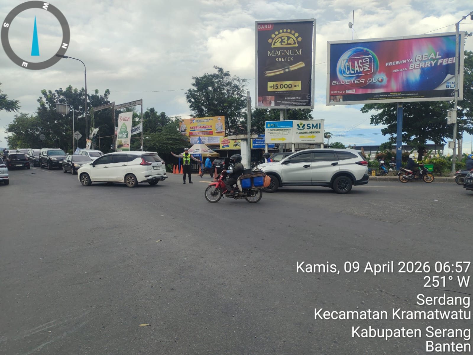 Cilegon – Polres Cilegon Polda Banten, Dalam Mewujudkan Aksi Nyata Pelayanan Kepada Masyarakat, Personil Satlantas Polres Cilegon Polda Banten Laksanakan PECAK (Pergelaran Cepat Anggota Kepolisian) Pengaturan Lalu lintas di wilayah perkotaaan terutama di titik rawan kemacetan dan kecelakaan lalu lintas, Kamis (09/04/2026).