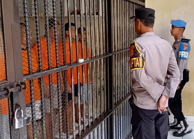 Personil Siaga Polres Cilegon laksanakan pemeriksaan Tahanan setiap 1 jam, antisipasi hal tidak diinginkan.