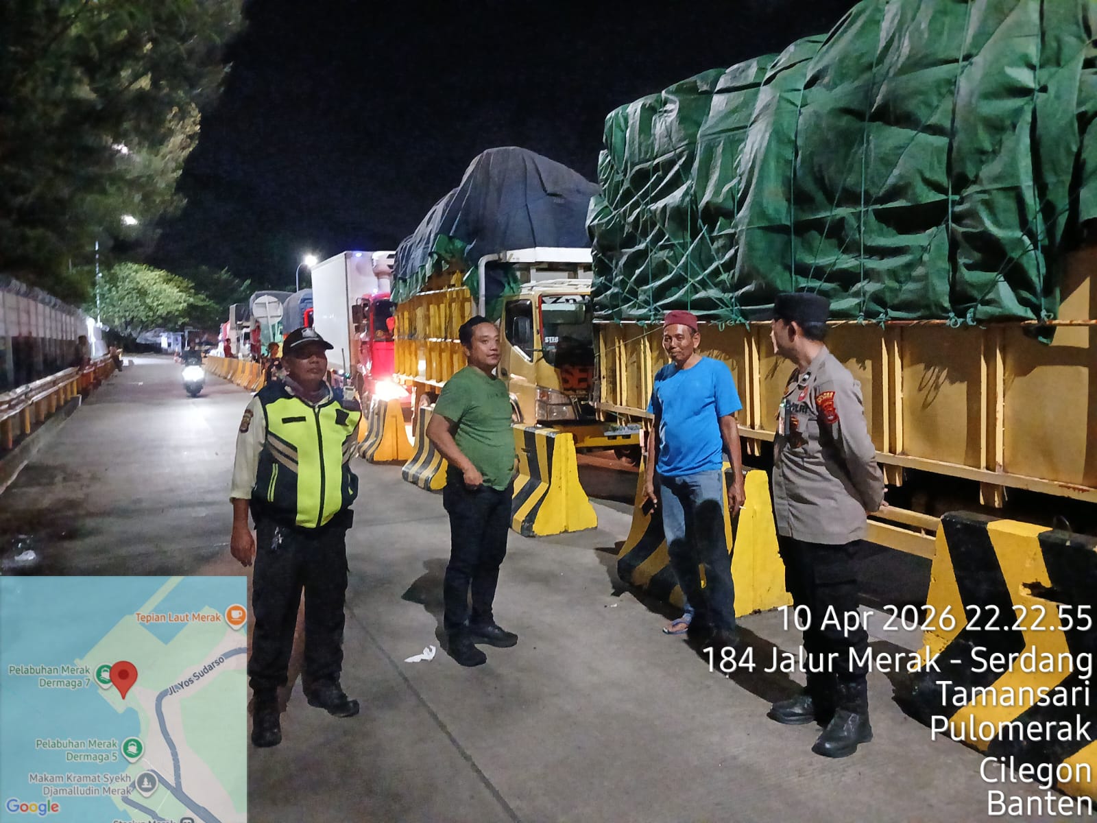 Cilegon - Personil Polsek Kskp Merak Polres Cilegon melaksanakan patroli di kawasan pelabuhan merak memberikan rasa aman dan damai, Jumat (10/04/2026)