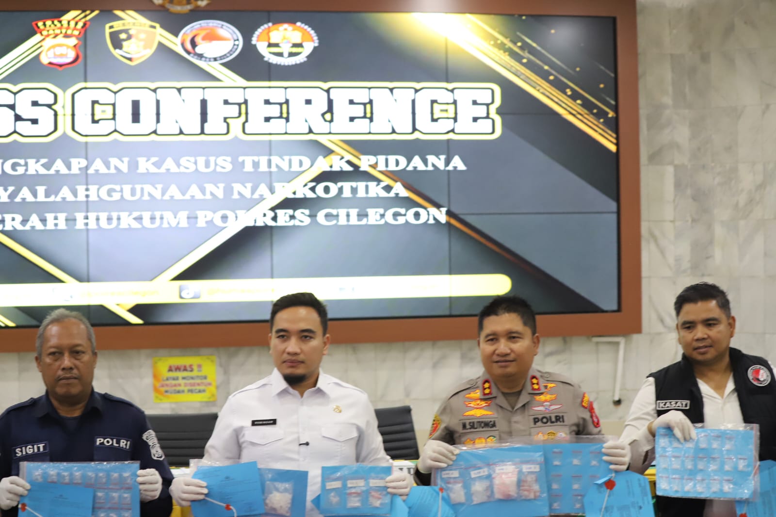 Kapolres Cilegon AKBP Dr. Martua Raja Taripar Laut Silitonga menyampaikan bahwa dari total tersangka, 9 orang berperan sebagai pengedar dan 3 orang sebagai perantara dalam transaksi narkotika.