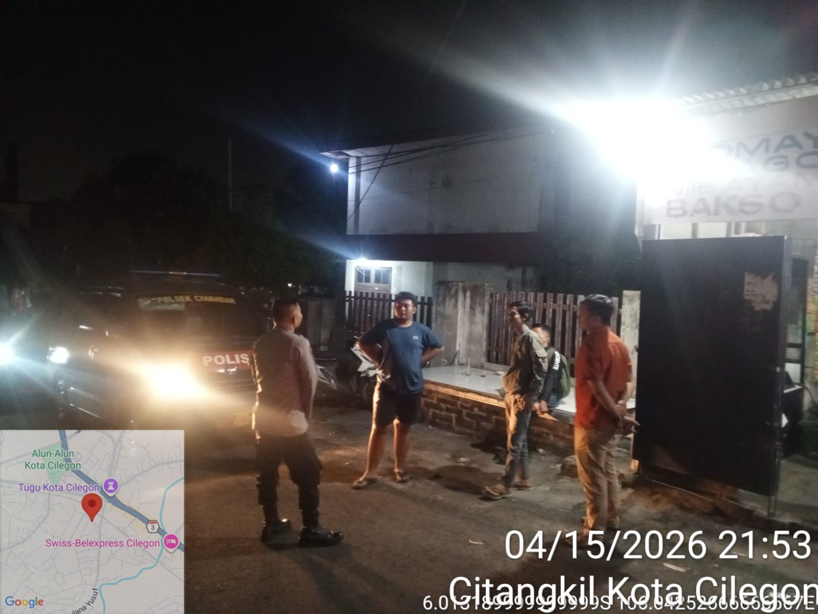 Cilegon - Personil Polsek Ciwandan Polres Cilegon Polda Banten Dalam Pelaksanaan Kegiatan Patroli dengan menyalakan lampu rotator berwarna biru di Daerah Hukum Polsek Ciwandan Polres Cilegon Polda Banten dari malam hingga dini hari, dalam rangka menciptakan situasi aman dan kondusif, Kamis (16/04/2026).