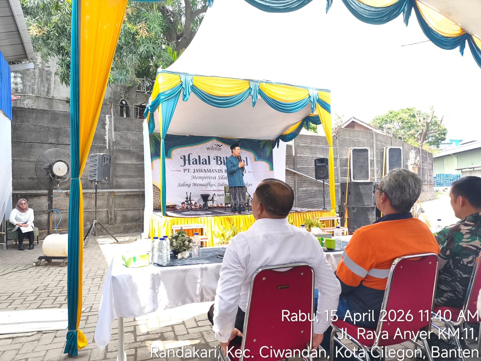 Cilegon - Personel Polsek Ciwandan Polres Cilegon menghadiri undangan acara Halal Bihalal PT Jawamanis Rafinasi (JMR) di Linkungan Sukasari RT 01 RW 01, Kelurahan Randakari, Kecamatan Ciwandan, Kamis (16/04/2026)