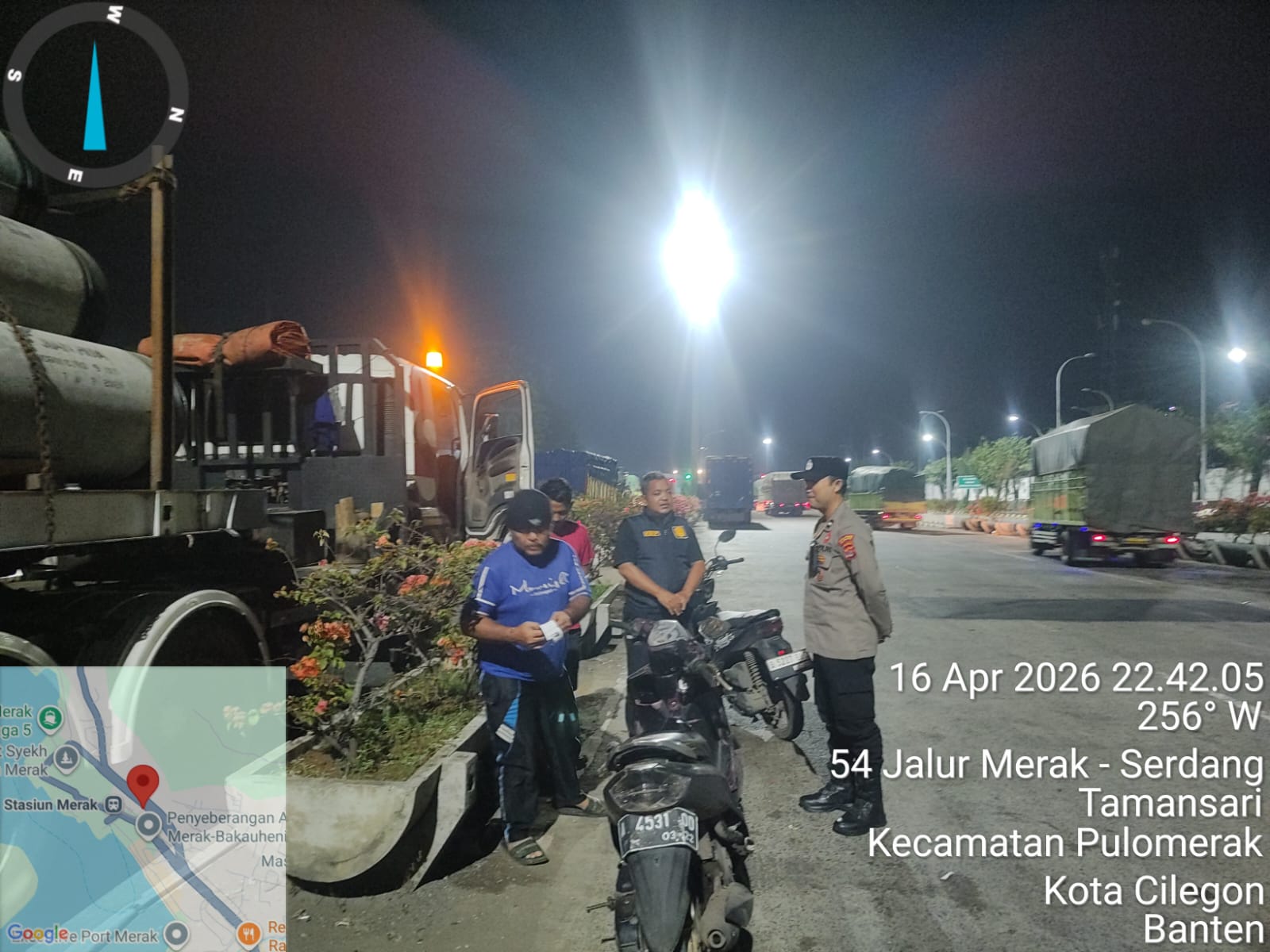 Cilegon - Personil Polsek Kskp Merak Polres Cilegon melaksanakan patroli di kawasan pelabuhan merak memberikan rasa aman dan damai, Jumat (17/04/2026)
