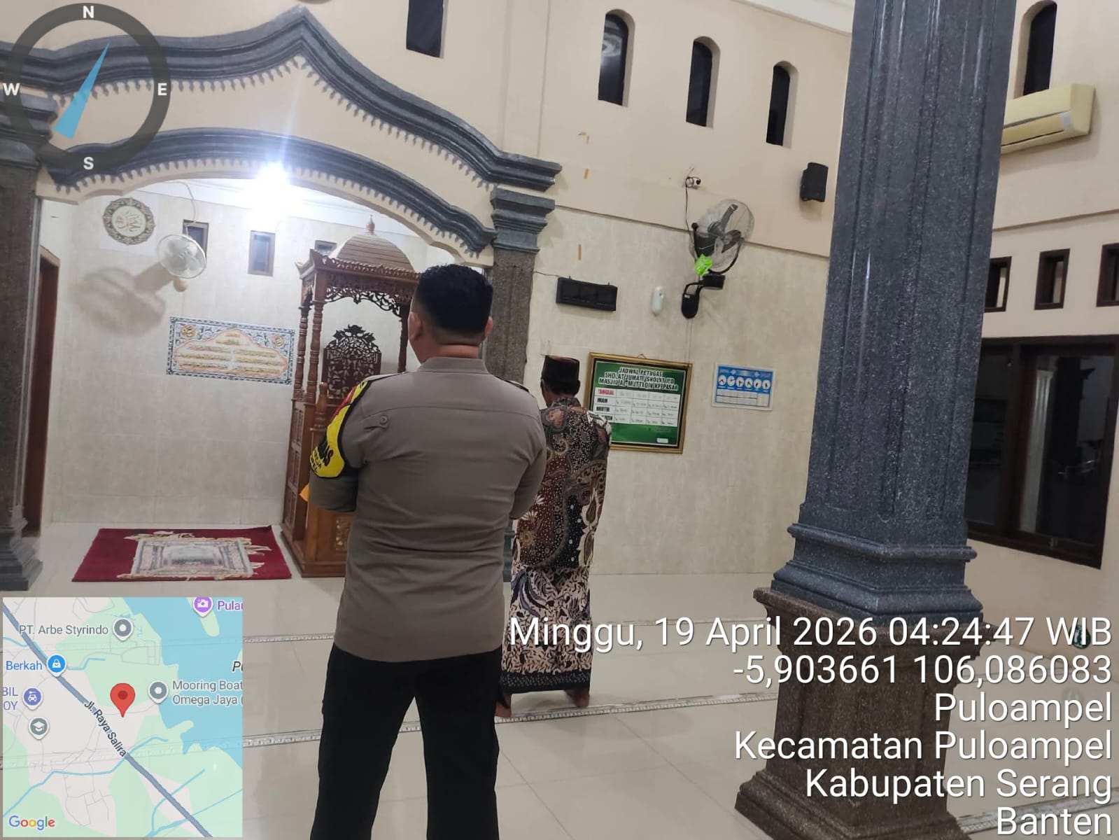 Bhabinkamtibmas Polsek Puloampel melaksanakan Shalat Subuh Berjamaah dalam rangka Program Commander Wish Kapolda Banten (SUBLING) - SUBUH KELILING. Minggu, 19/04/2026.