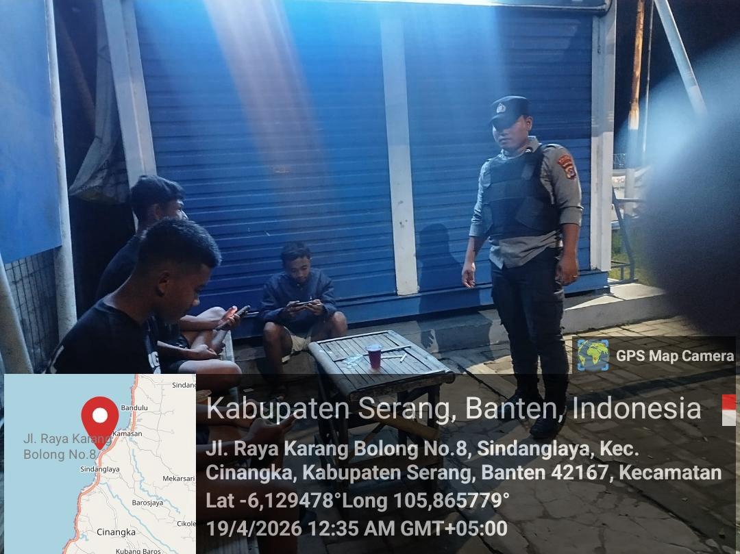 *Cilegon* – Dalam Rangka Pencegahan Kejahatan Jalanan dan Memelihara situasi keamanan dan menjaga serta memberikan rasa aman dan nyaman di masyarakat,Salah satu upaya untuk mewujudkan hal tersebut sebagaimana yang dilakukan oleh Personil Polsek Cinangka Polres Cilegon Polda Banten melaksanakan giat patroli blue light malam hari hingga menjelang pagi, Minggu (19/04/2026).