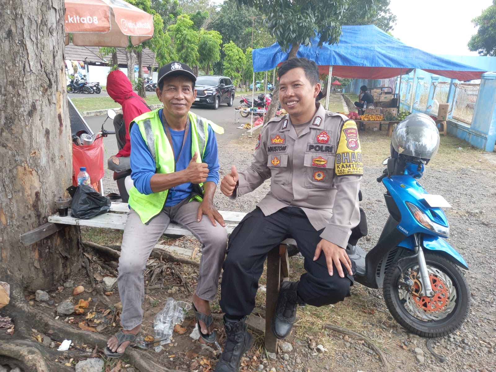 Bhabinkamtibmas Kelurahan Kotabumi, Polsek Purwakarta, Polres Cilegon, Bripka Agustoni, yang melaksanakan kegiatan penyambangan dan silaturahmi dengan juru parkir serta warga sekitar di Simpang Propelat