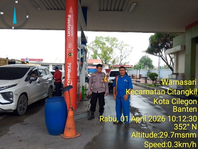 Cilegon - Kepolisian Polsek Ciwandan Polres Cilegon Polda Banten, melakukan pengecekan stok Bahan Bakar Minyak (BBM) di dua SPBU di wilayah Ciwandan, Cilegon, Rabu (01/04/2026). Kapolres Cilegon Polda Banten AKBP Dr. Martua Raja Taripar Laut Silitonga Melalui Kapolsek Ciwandan Polres Cilegon Polda Banten KOMPOL Achri Dwi Yunito Mengatakan Bahwa Pengecekan ini dilakukan...