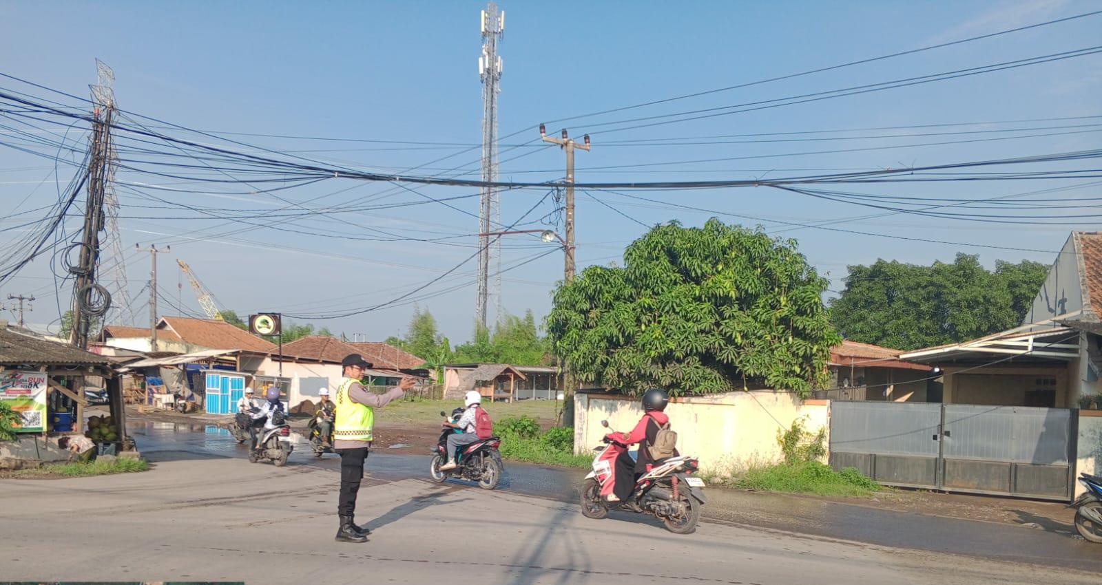 Cegah Kemacetan dan Laka Lantas, Aipda Linggar dan Bripka Susilo Laksanakan Strong Poin Pagi Di Simpang Bojonegara