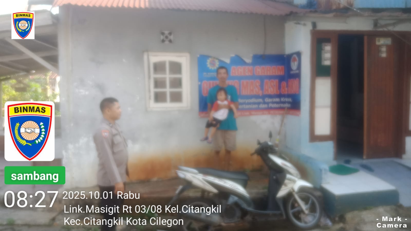 Cilegon - Bhabinkamtibmas Polsek Ciwandan Polres Cilegon Polda Banten Melaksanakan kegiatan Dialogis/Sambang Door to Door Sistem (DDS) Di daerah binaannya serta memberikan Pesan-pesan Kamtibmas Guna Menciptakan situasi Harkamtibmas yang Aman dan nyaman, Rabu (01/10/2025).