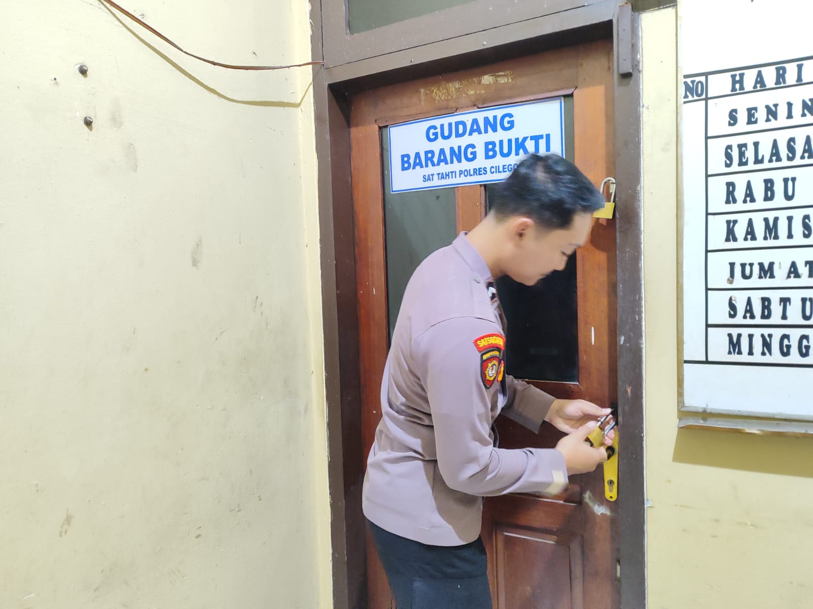 Anggota Piket Tahti Polres Cilegon Harus Melakukan Kegiatan Rutin Pengecekan Kelengkapan dan Barang Bukti Di Gudang Barang Bukti.