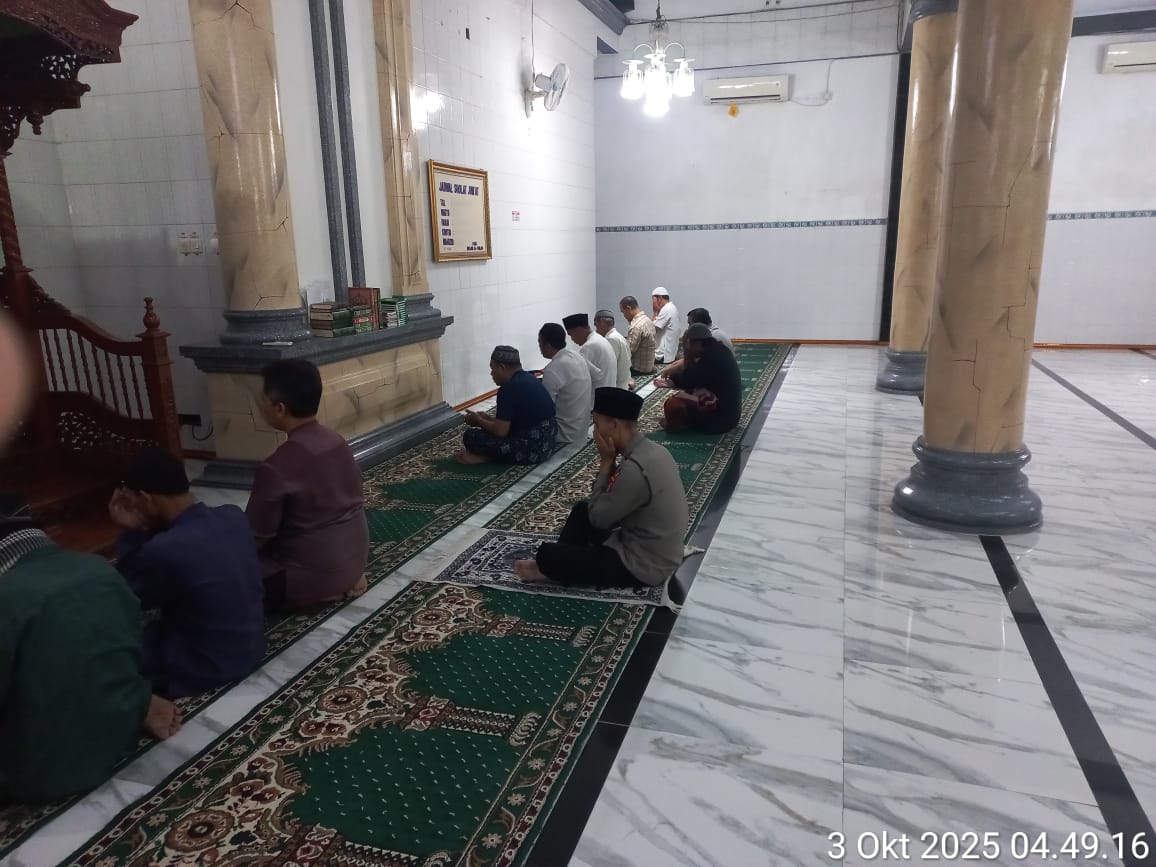 =Cilegon – Personil Kskp Merak Polres Cilegon Polda Banten menggelar kegiatan Pembinaan Rohani dengan shalat subuh keliling di Masjid Yang ada Di Daerah hukum Polsek Kp Merak Polres Cilegon Polda Banten, Jumat (03/10/2025).