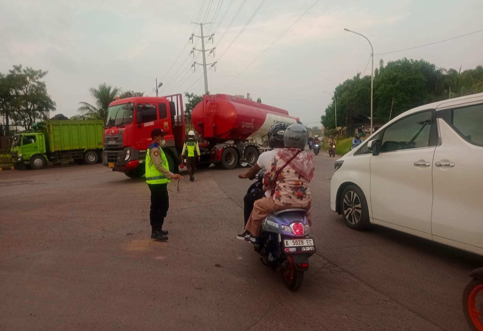 Kapolres Cilegon AKBP Martua Raja Taripar Laut Silitonga Melalui Kapolsek Kskp Banten Polres Cilegon Akp Fredo Leonard menyampaikan Laksanakan Pengamanan Sesuai plotinganya lakukan Pengaturan Supaya Arus Lalu Lintas tetap Berjalan lancar dan Pastikan tidak ada hambatan.
