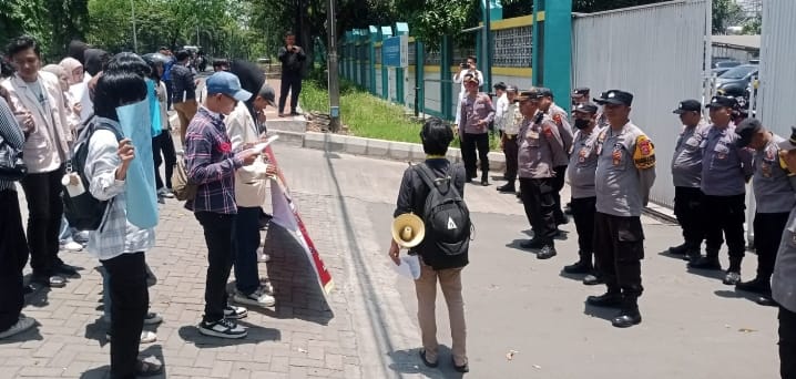 Kapolres Cilegon AKBP Martua Raja Taripar Laut Silitonga Melalui Kapolsek Purwakarta Polres Cilegon IPTU Sukanda mengatakan Pengamanan Aksi Unjuk Rasa Aliansi Mahasiswa Banten Mendapatkan Pengamanan dari jajaran Polsek Gabungan Polres Cilegon