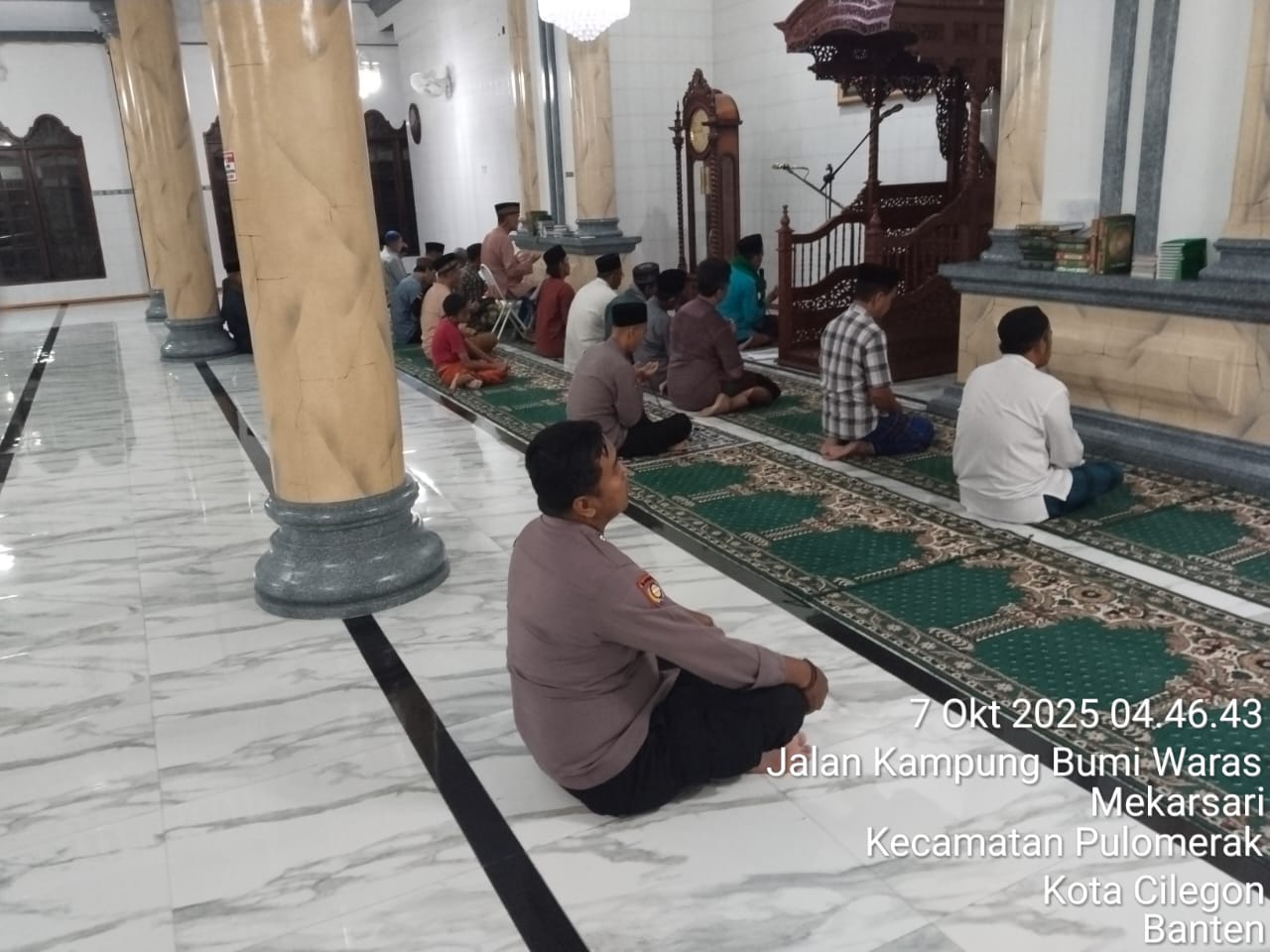 “Dalam kegiatan tersebut, Personil Polsek Kp Polres Cilegon Polda Banten turut berbaur dengan jemaah masjid dalam melaksanakan shalat subuh berjamaah. Setelah itu, dilakukan dialog interaktif antara petugas kepolisian dan masyarakat untuk mendengarkan aspirasi serta memperoleh masukan terkait dengan situasi keamanan dan ketertiban di lingkungan sekitar,” tambah Kapolsek.
