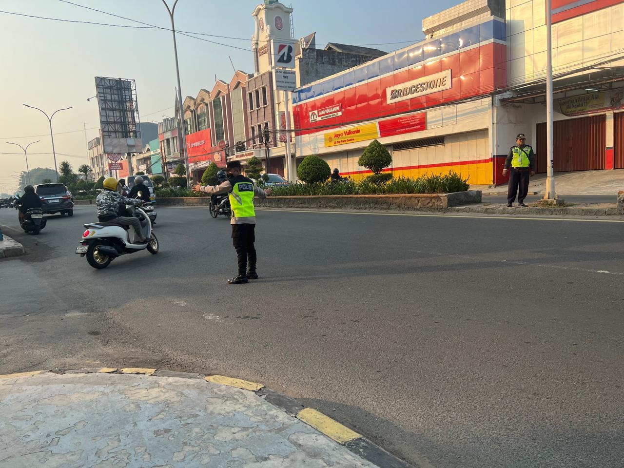 Cilegon,Polres Cilegon Polda Banten Pada Rabu/08/10/2025 Pukul 06.30 Wib, Personil Siwas Polres Cilegon, Brigpol Hadi sudrajat melaksanakan kegiatan pengaturan arus lalu lintas di Jalur Protokol jalan utama Kota Cilegon tepat nya di jalur protokol Kota Cilegon.