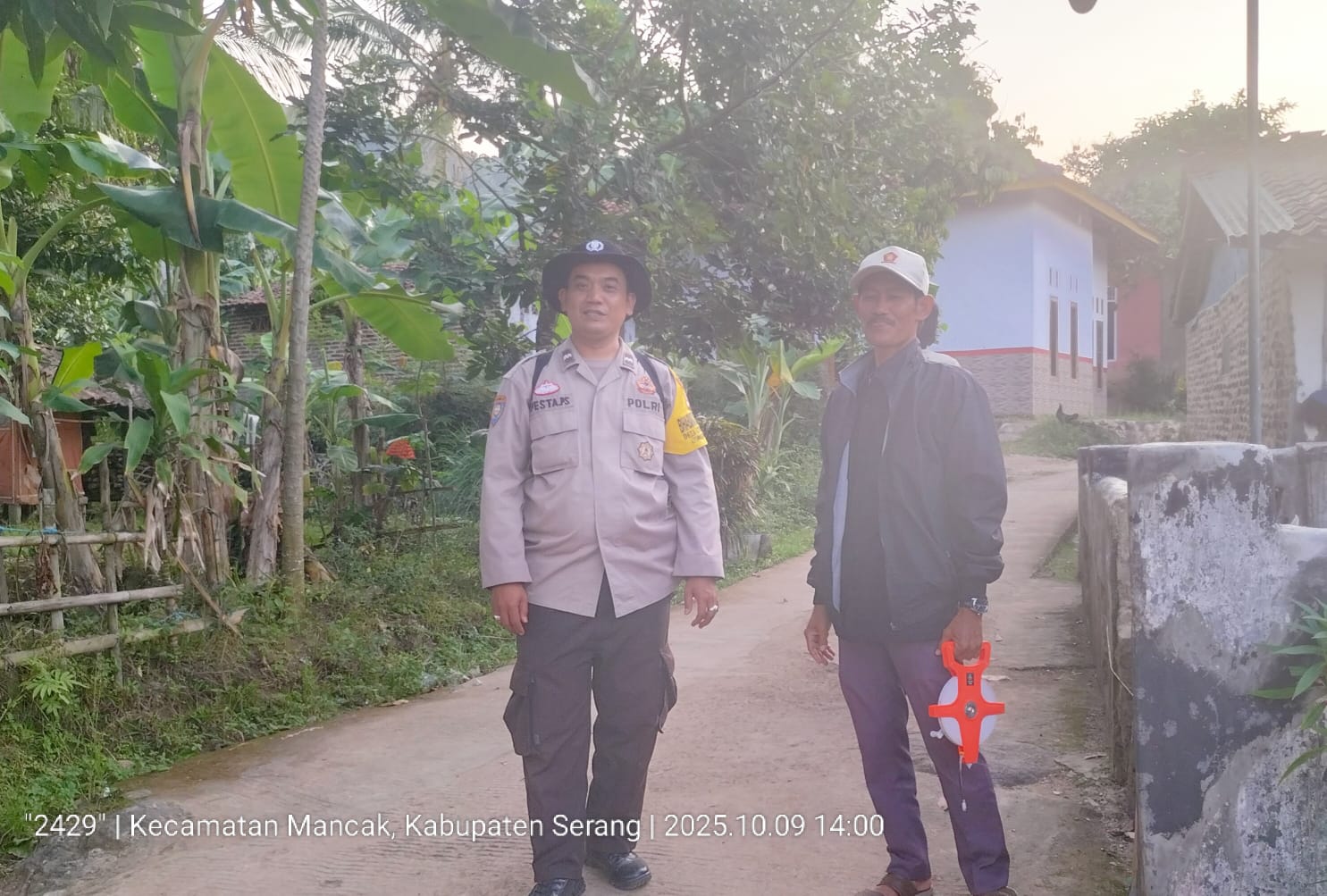 Mancak - Sebagai Pengemban Fungsi Harkamtibmas, Bhabinkamtibmas Polsek Mancak Kegiatan Commander Wish Kapolres Cilegon "TRENDING" dengan cara  giat Sambang/DDS dan monitoring antisipasi Gangguan Kamtibmas dan Bhabinkamtibmas di wilayah Desa Ciwarna Kec. Mancak Kab. Serang. KAMIS (09/10/2025).