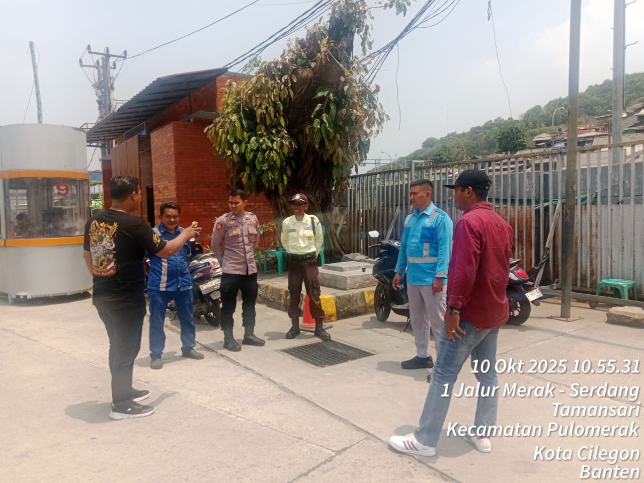 Cilegon - Personel Polsek Kskp Merak Polres Cilegon Polda Banten melaksanakan sambang dan patroli kawasan pelabuhan merak dalam rangka menjaga Harkamtibmas di Kawasan Pelabuhan Merak, Jumat (10/10/2025).