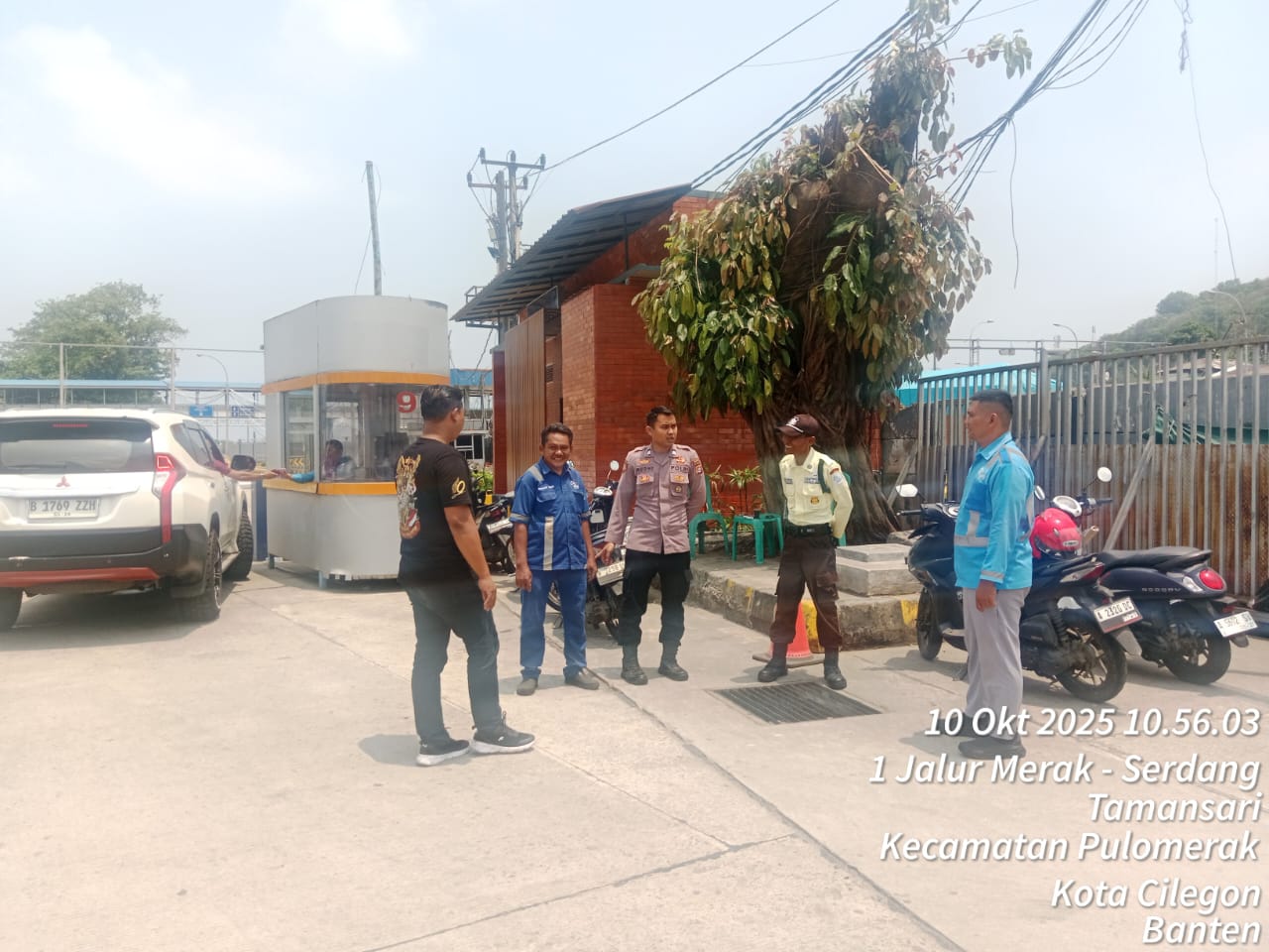 Cilegon - Personel Polsek Kskp Merak Polres Cilegon Polda Banten melaksanakan sambang dan patroli kawasan pelabuhan merak dalam rangka menjaga Harkamtibmas di Kawasan Pelabuhan Merak, Jumat (10/10/2025).