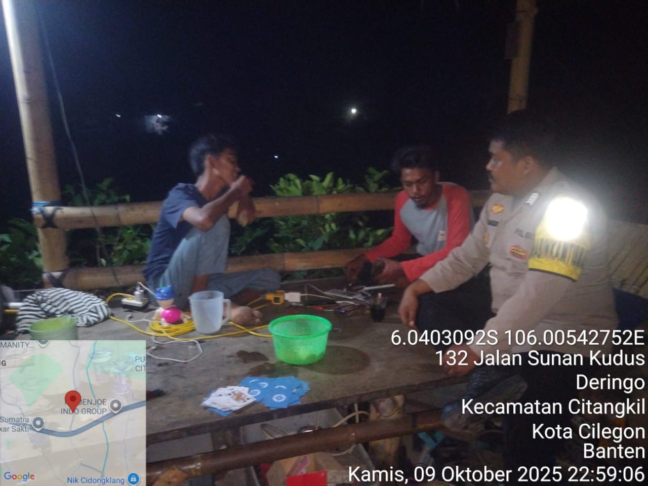 Cilegon - Upaya mengantisipasi aksi kejahatan pada daerah binaan dan memberikan rasa aman dan nyaman kepada warga binaan, Bhabinkamtibmas Polsek Ciwandan Polres Cilegon Polda Banten sambangi warga pada malam hari, Jum’at (10/10/2025).