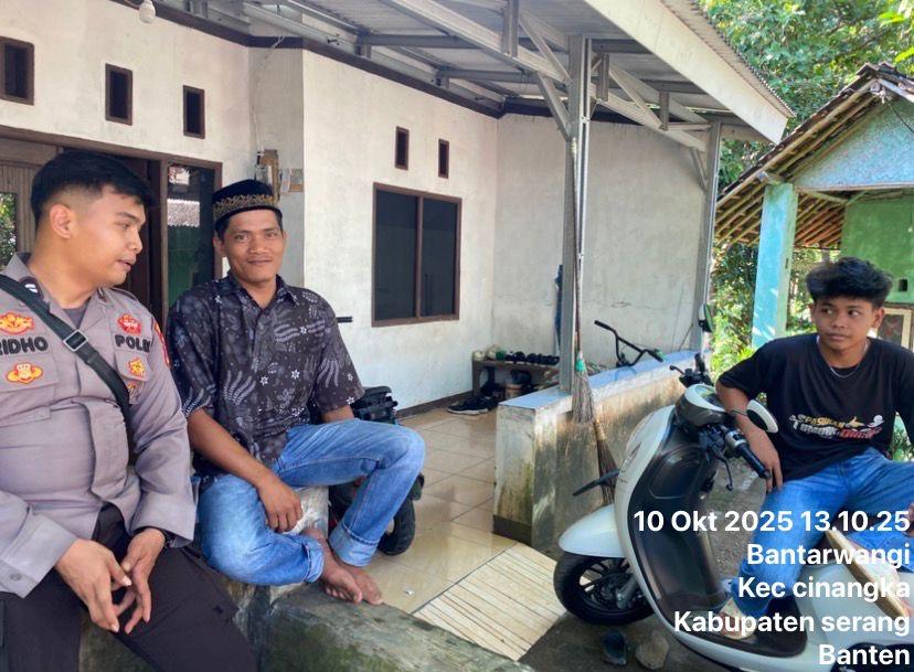*Polres Cilegon* - Guna Menekan Gangguan Kamtibmas (GKTM) ,Bhabinkamtibmas Polsek Cinangka Polres Cilegon Polda Banten melakukan kegiatan Sambang di daerah hukum Polsek Cinangka, Sabtu (11/10/2025).