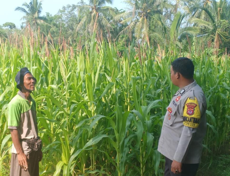 Bhabinkamtibmas Polsek Anyar Bersama Petani Monitorung Lahan Jagung
